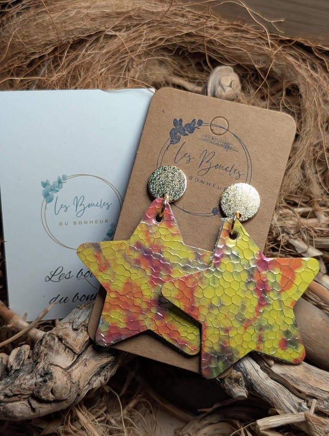 Boucles d'oreilles Années 80/90 étoile jaune orangé x038