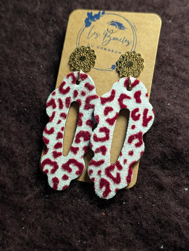 Boucles d'oreilles Charlotine léopard bordeaux ch009