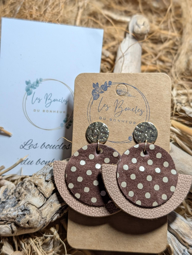 Boucles d'oreilles Dona beige marron glacé à pois do135