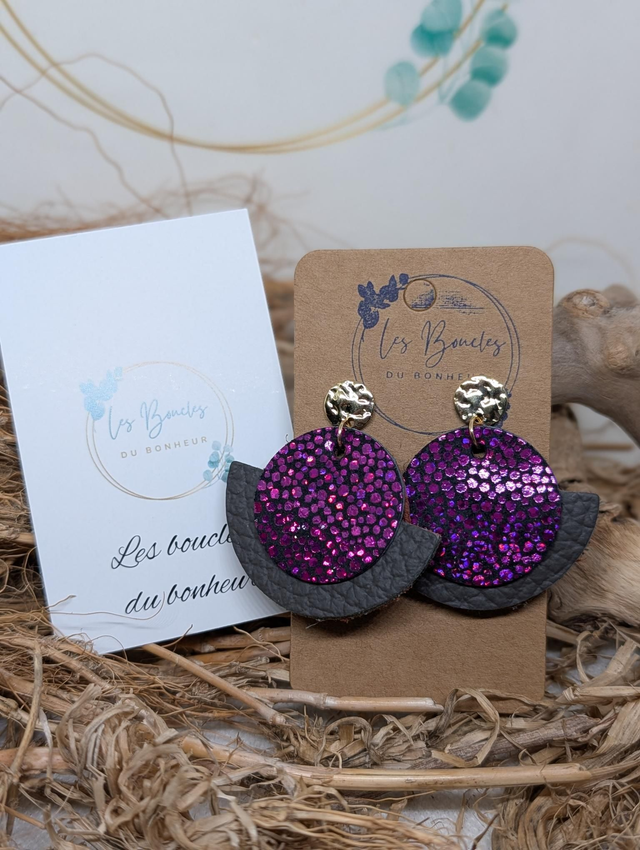 Boucles d'oreilles Dona fushia gris fushia do086