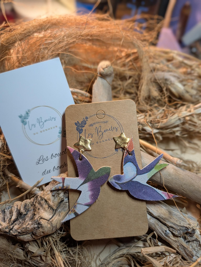 Boucles d'oreilles Hirondelle fleurie h002