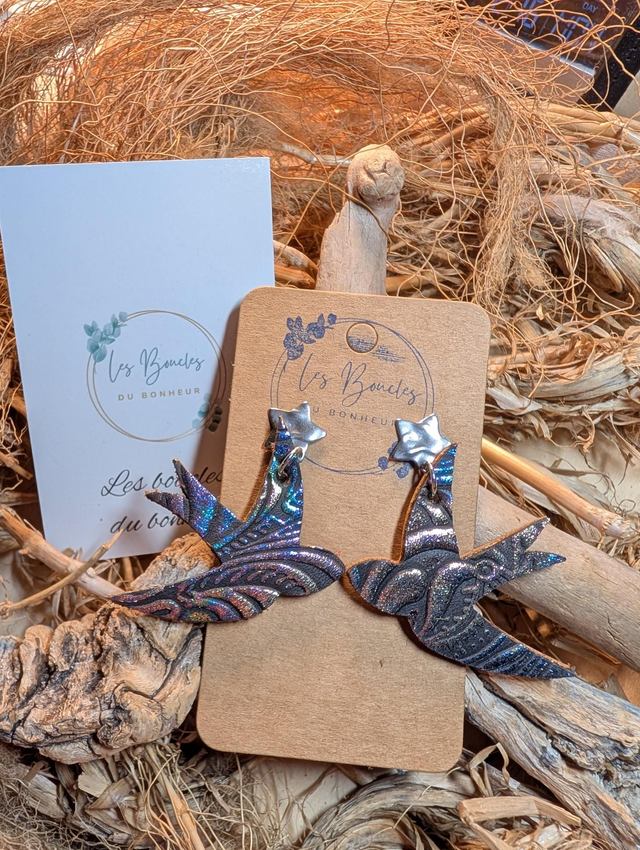 Boucles d'oreilles Hirondelle holographique h008