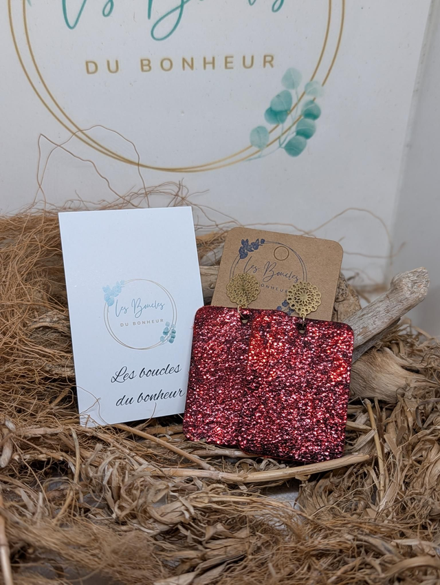 Boucles d'oreilles Léontine rouge irisé l012