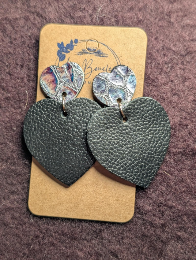 Boucles d’oreilles Cœur – Cuir recyclé 💜