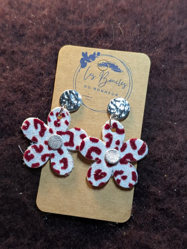 Boucles d'oreilles Marguerite léopard bordeaux m604