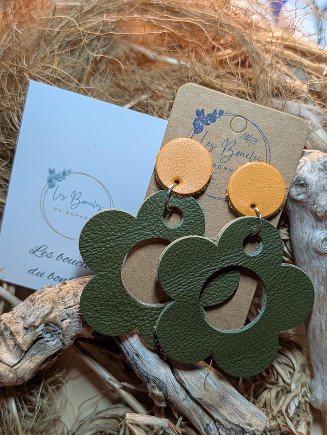 Boucles d'oreilles Sonia kaki jaune sa014